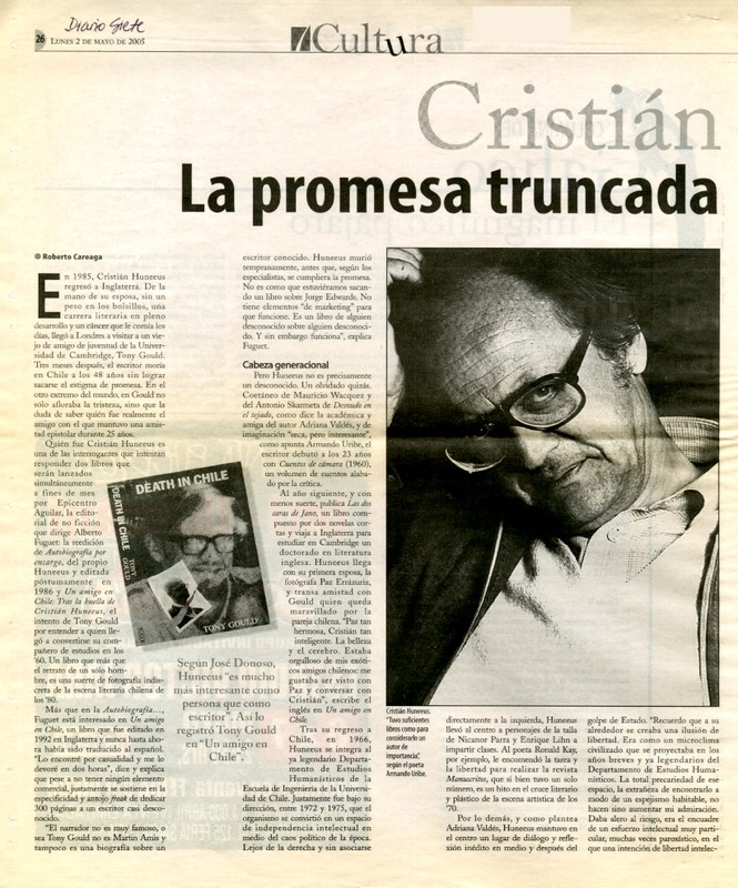 Cristián Huneeus. La promesa truncada. [artículo] Roberto Careaga Medina