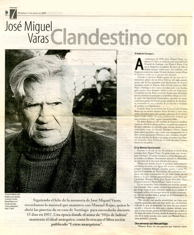 José Miguel Varas clandestino con Manuel Rojas [artículo] Roberto Careaga C.