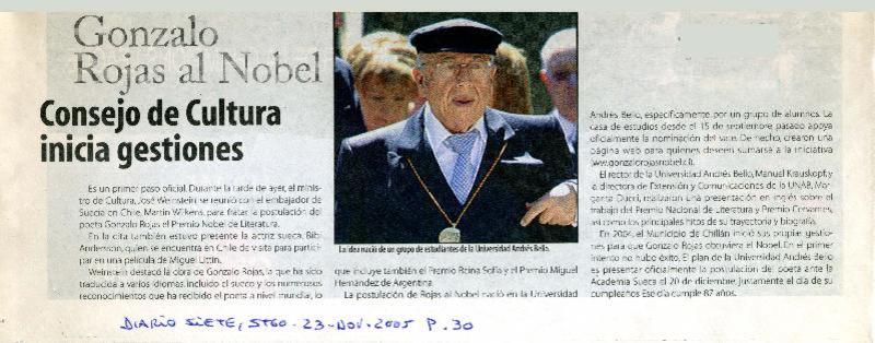 Gonzalo Rojas al Nobel Consejo de Cultura inicia gestiones [artículo].