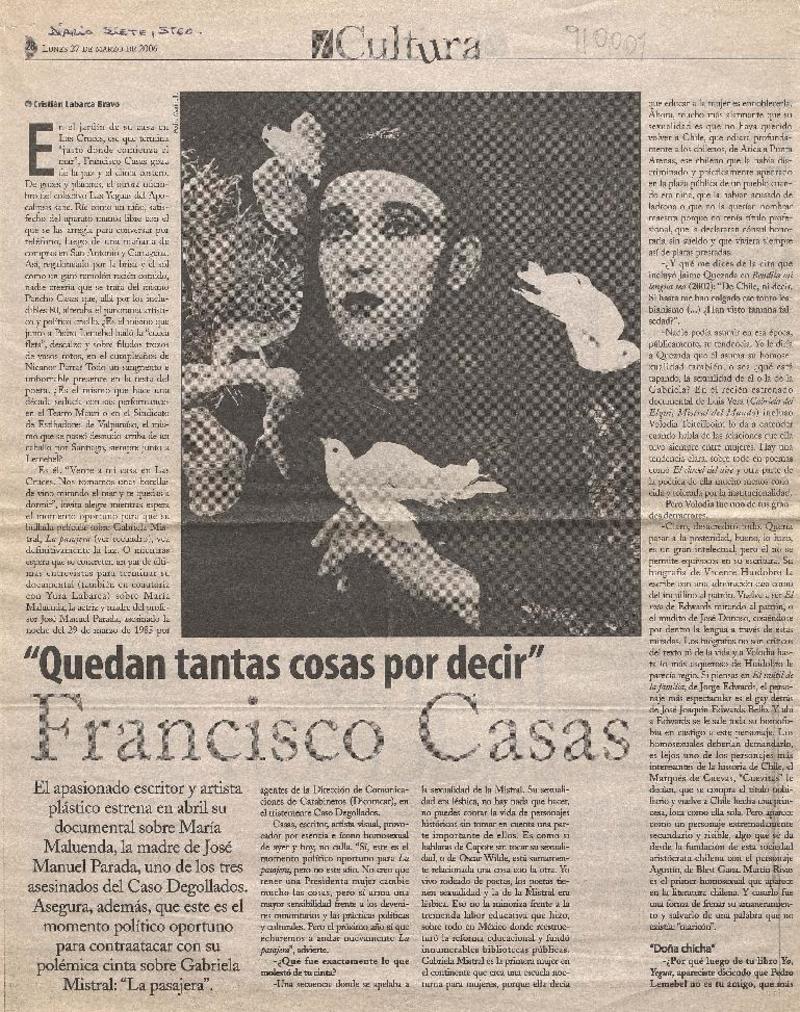 "Quedan tantas cosas por decir" [entrevista] [artículo] : Cristián Labarca Bravo.