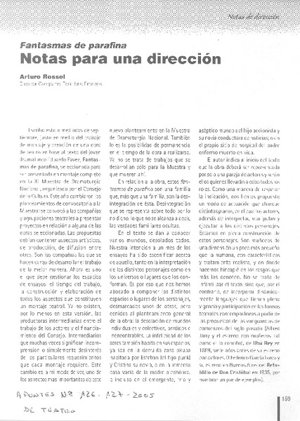 Fantasmas de parafina notas para una dirección. [artículo] Arturo Rossel