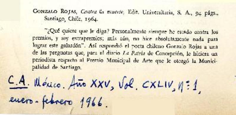 Autores chilenos - Rojas, Gonzalo - Contra la muerte