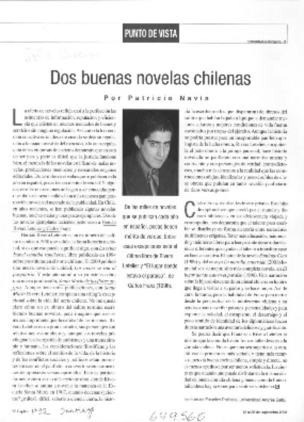 Dos buenas novelas chilenas [artículo] Patricio Navia