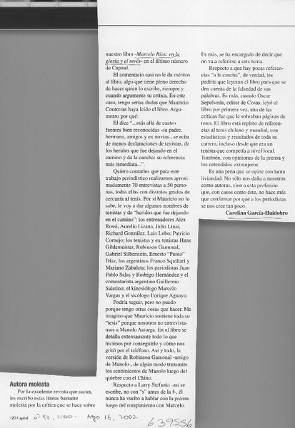 Autora molesta [artículo] Carolina García-Huidobro