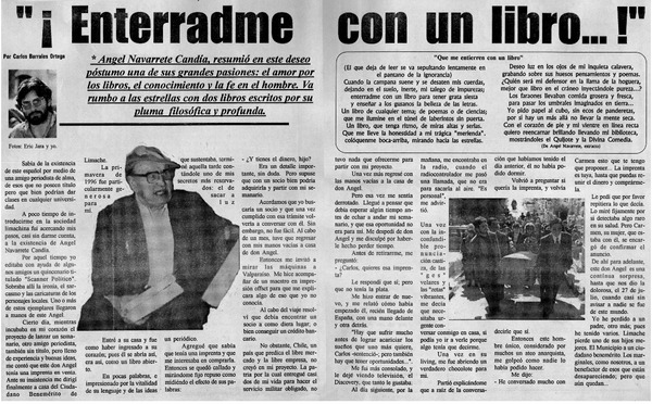 "Enterrádme con un libro --" [artículo] Carlos Barrales Ortega.