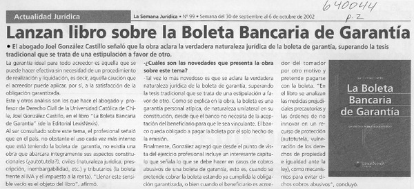 Autores chilenos - González Castillo, Joel - Boleta bancaria de garantía