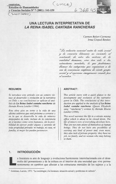 Una lectura interpretativa de La Reina Isabel cantaba rancheras [artículo] Carmen Balart Carmona <y> Irma Césped Benítez