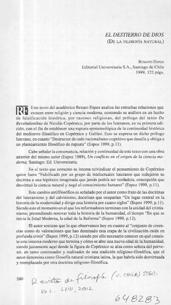 Espoz, Renato - Destierro de Dios - Autores chilenos