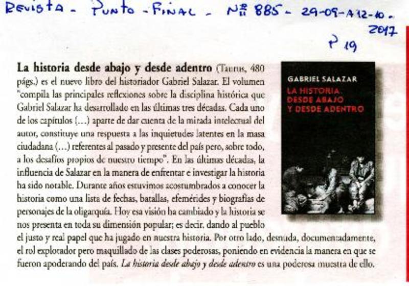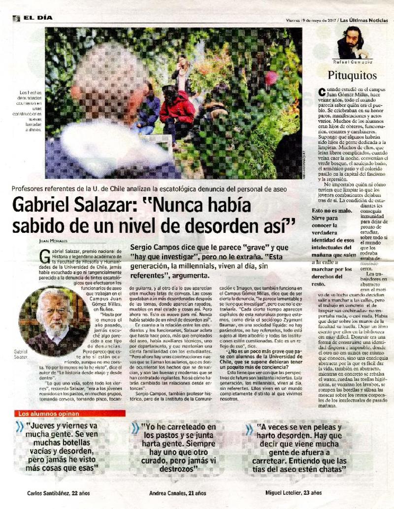 Gabriel Salazar "Nunca había sabido de un desorden así" [entrevista] [artículo] : Juan Morales.