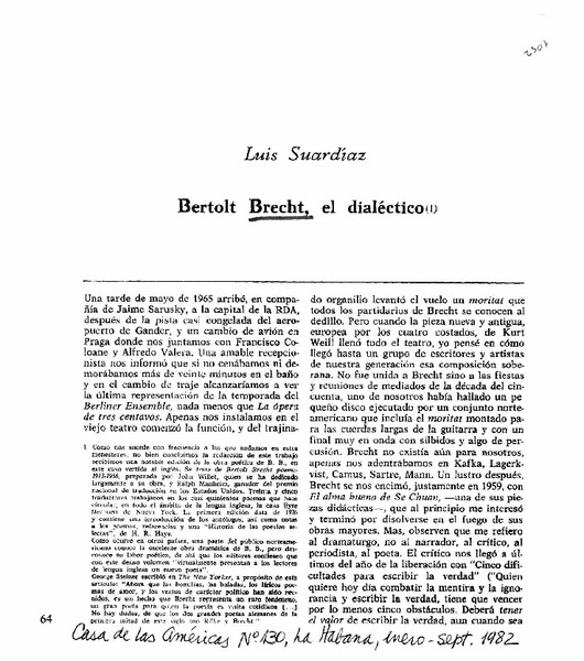 Bertolt Brecht, el díalecto [artículo] Luis Suardíaz.