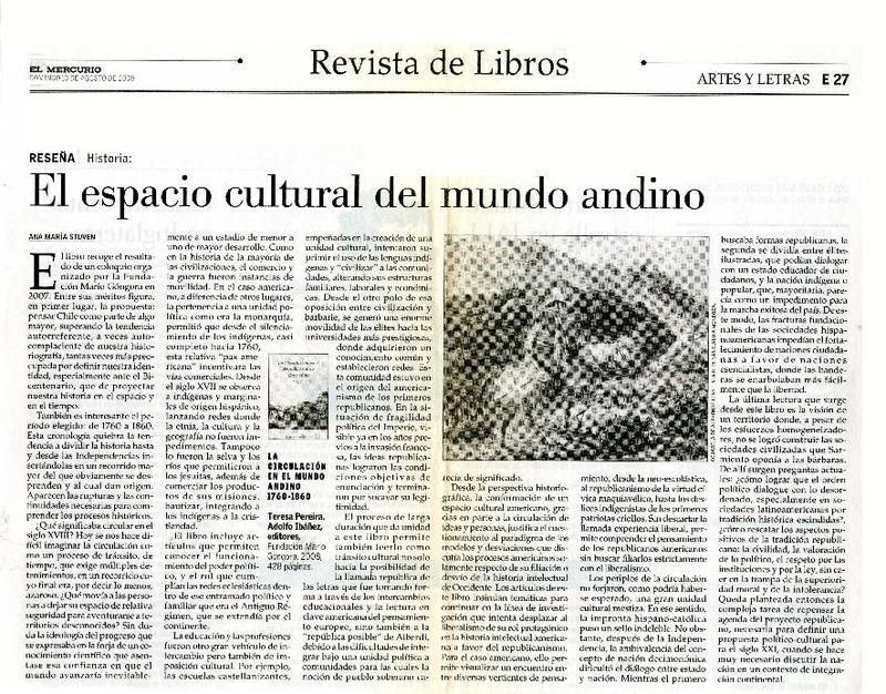 El espacio cultural del mundo andino [artículo] Ana María Stuven.