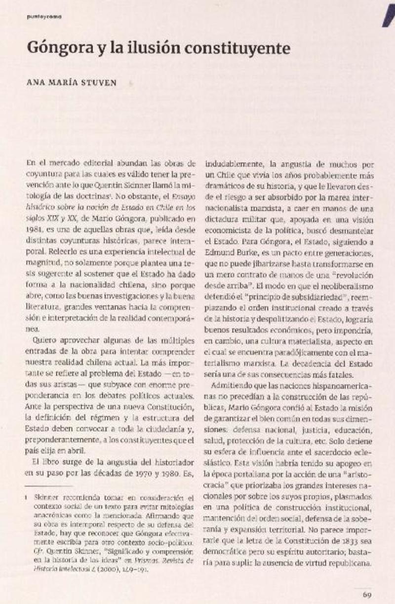 Góngora y la ilusión constituyente [artículo] Ana María Stuven