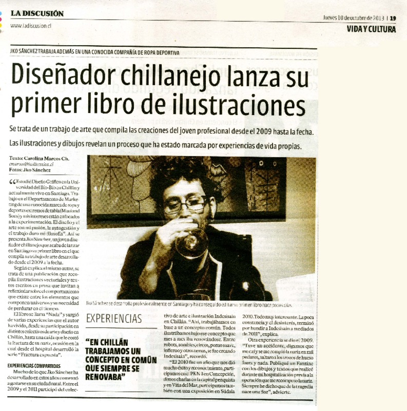 Diseñador chillanejo lanza su primer libro de ilustraciones [artículo] Carolina Marcos Ch.
