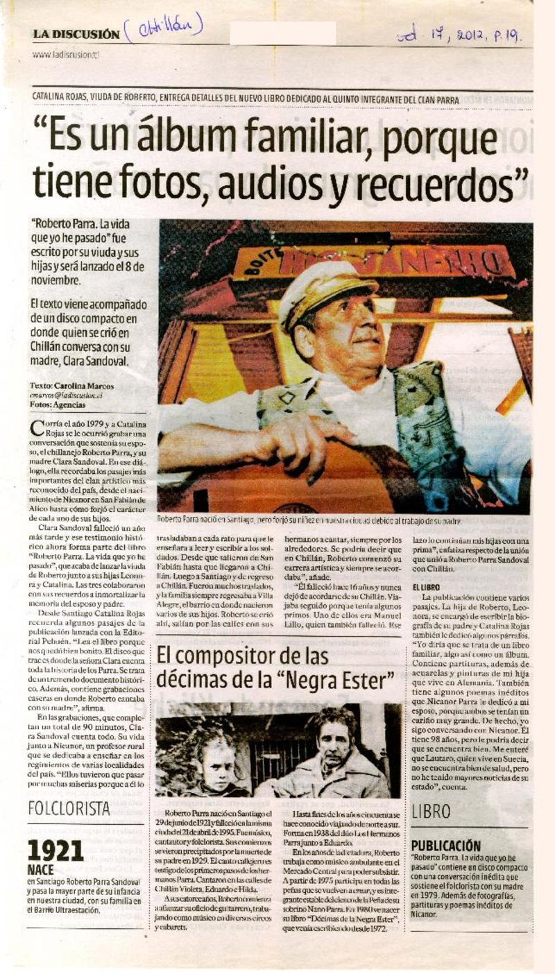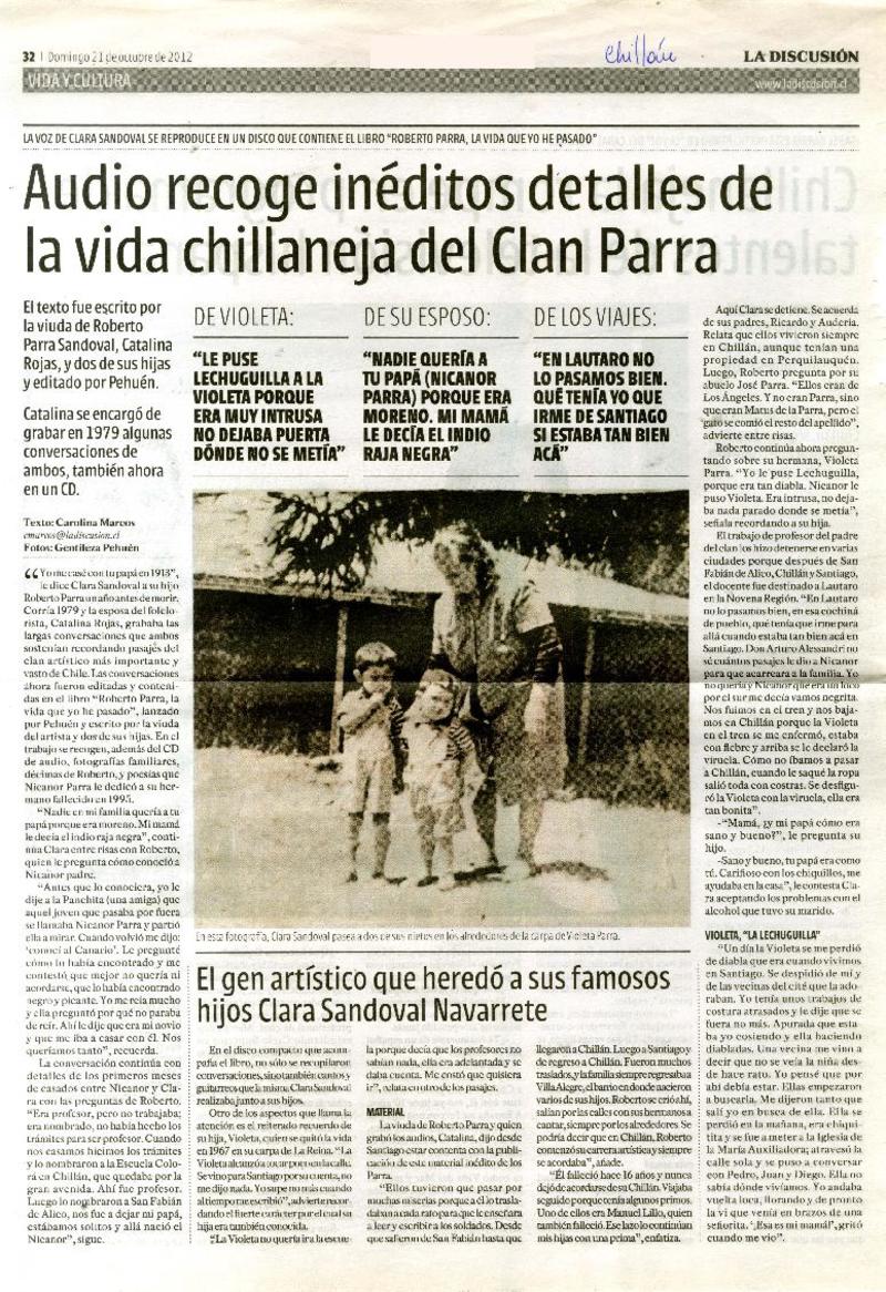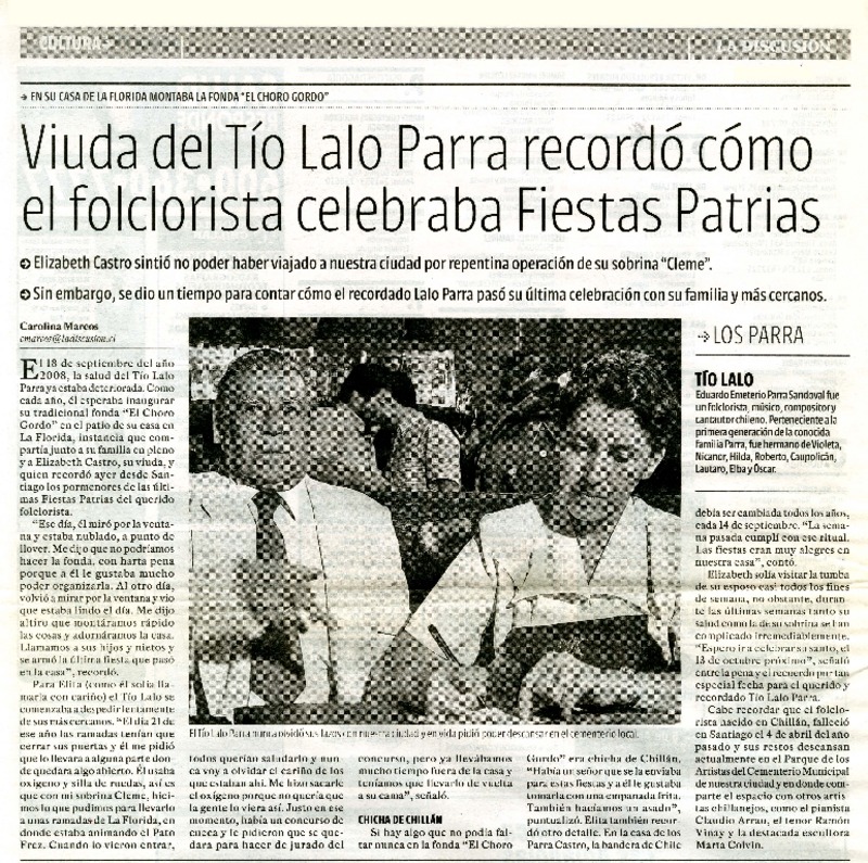 Audio recoge inéditos detalles de la vida chillaneja del clan Parra [artículo] Carolina Marcos.