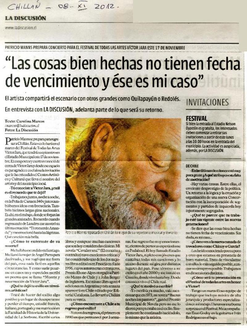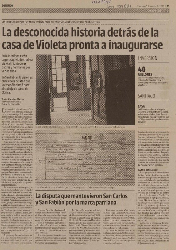 "Nido de Parras" promete rescatar figura de Violeta para San Fabián [artículo] Carolina Marcos.