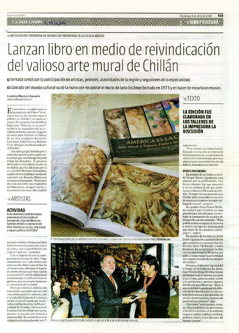 Lanzan libro en medio de reivindicación del valioso arte mural de Chillán [artículo] Carolina Marcos Chavarría.