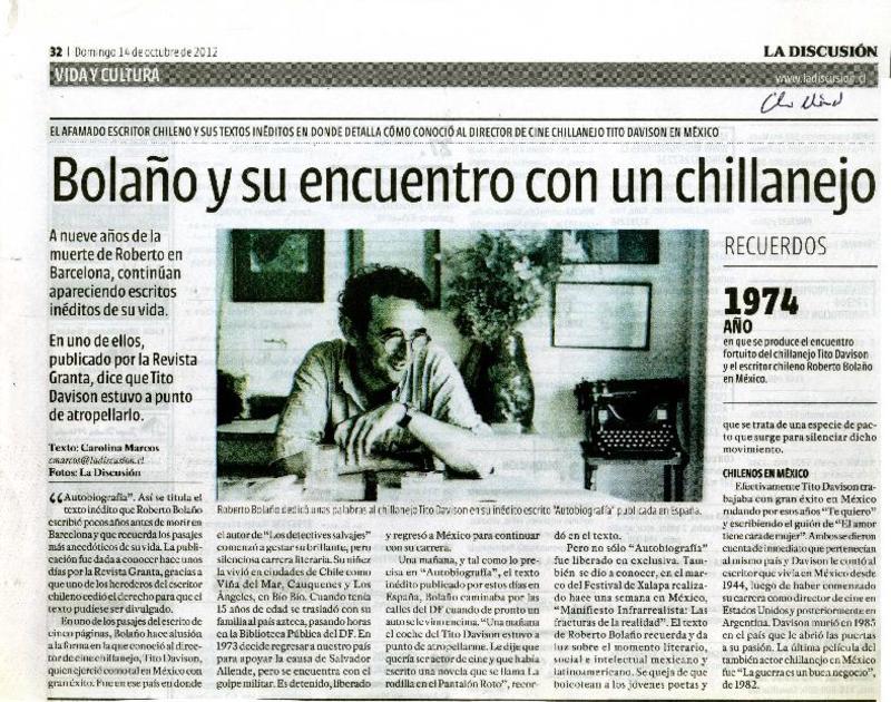 Bolaño y su encuentro con un chillanejo [artículo] Carolina Marcos
