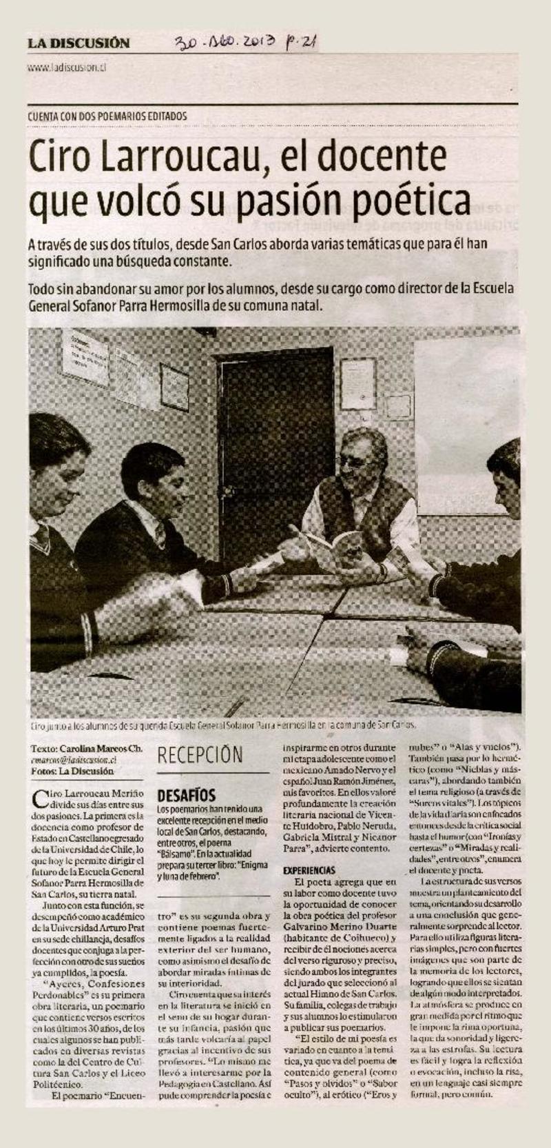 Ciro Larroucau, el docente que volcó su pasión poética [artículo] Carolina Marcos Ch.