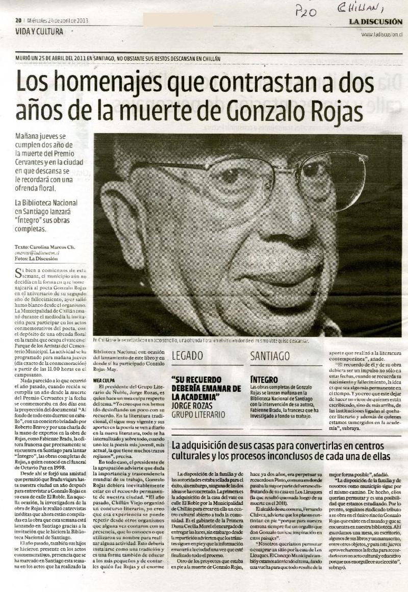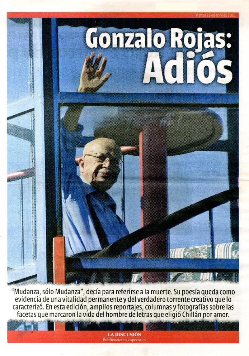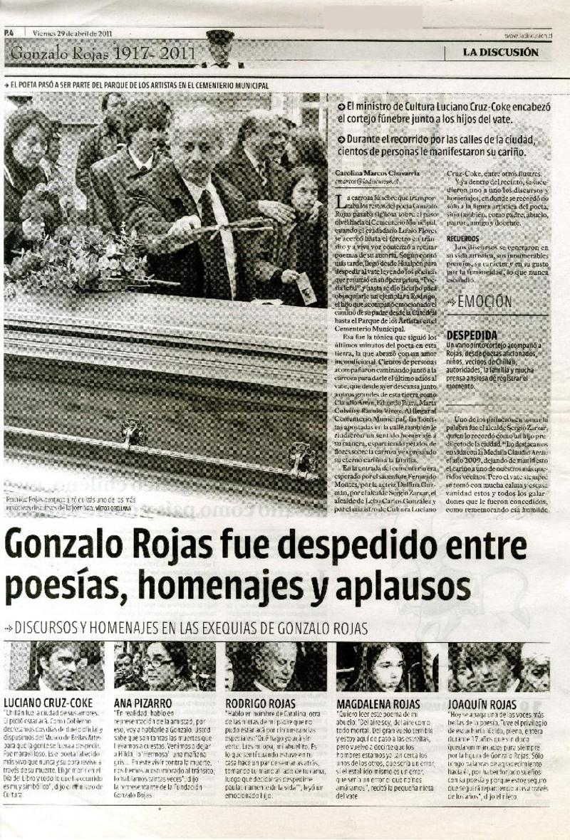 Gonzalo Rojas fue despedido entre poesías, homenajes y aplausos [artículo] Carolina Marcos Chavarría.