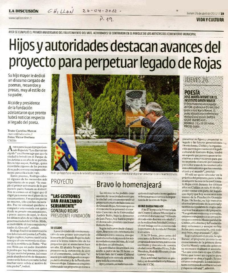 Hijos y autoridades destacan avances del proyecto para perpetuar legado de Rojas [artículo] Carolina Marcos.