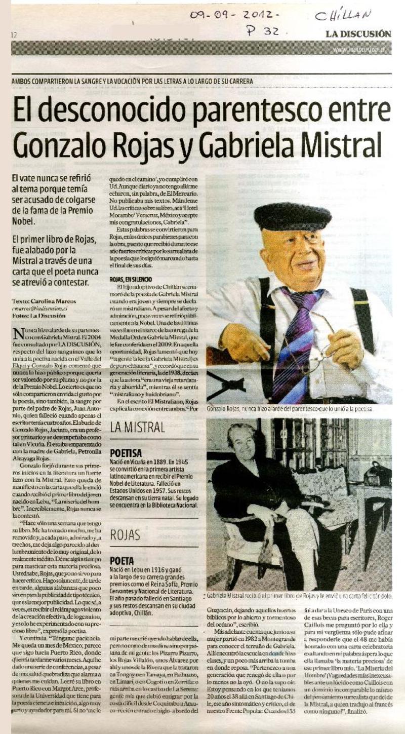 El desconocido parentesco entre Gonzalo Rojas y Gabriela Mistral. [artículo] Carolina Marcos.