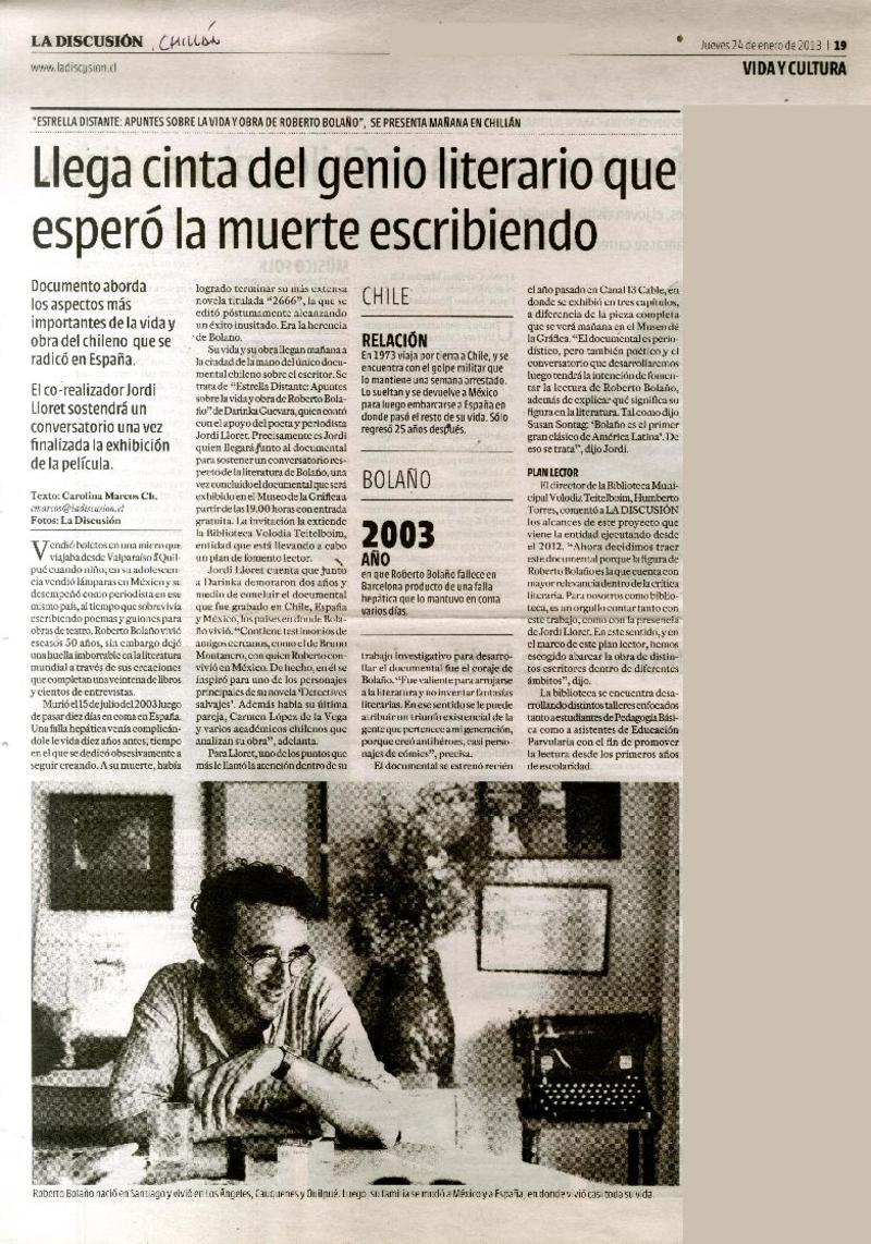 Llega cinta del genio literario que esperó la muerte escribiendo [artículo] Carolina Marcos Ch.