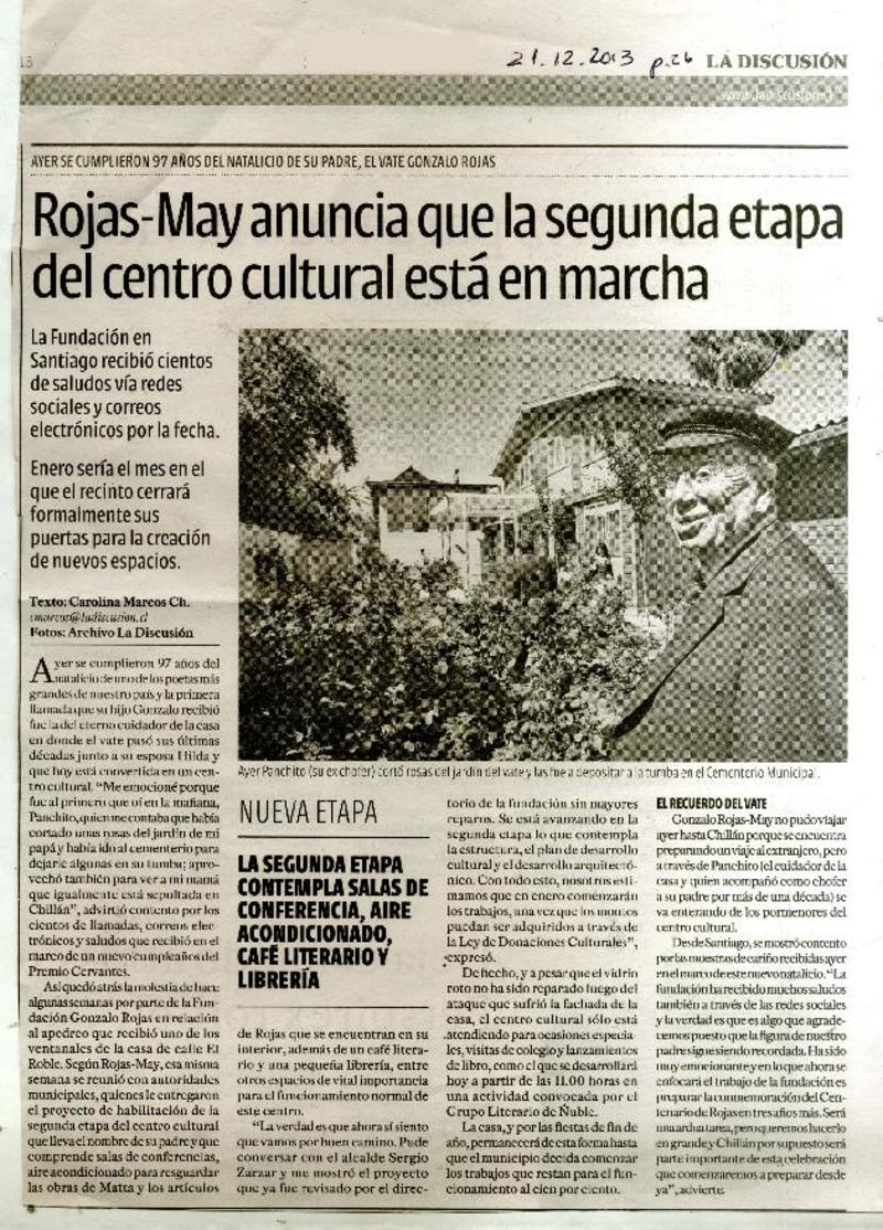 Rojas-May anuncia que la segunda etapa del centro cultural está en marcha [artículo] Carolina Marcos Ch.