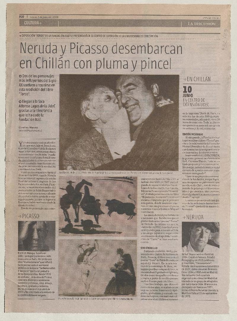 Neruda y Picasso desembarcan en Chillán con pluma y pincel [artículo] Carolina Marcos.