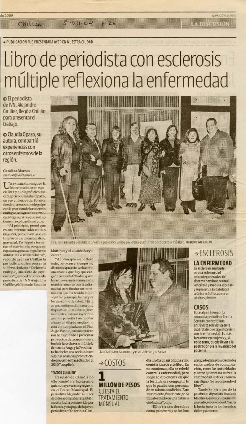 Libro de periodista con esclerosis múltiple reflexiona la enfermedad [artículo] Carolina Marcos.