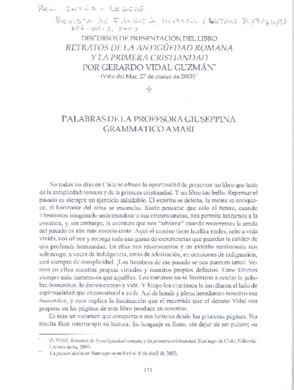Retratos de la antigüedad romana y la primera cristiandidad [artículo] Giuseppina Grammatico Amari.