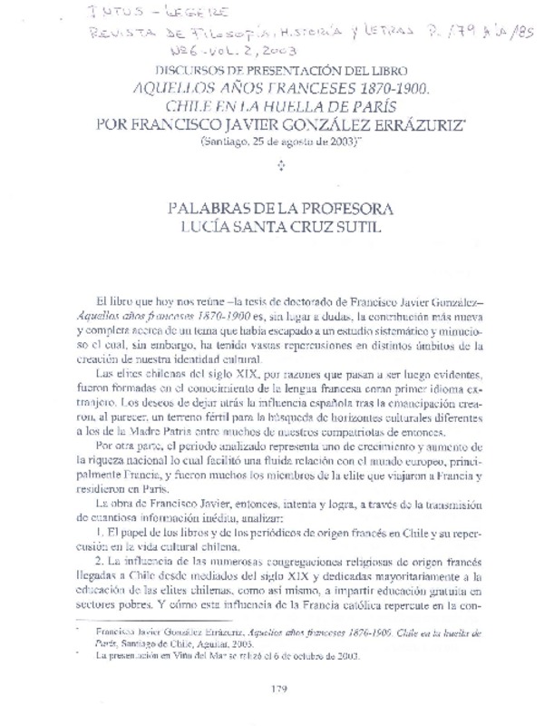 ![Aquellos años franceses 1870-1900 : Chile en la huella de París [artículo] Lucía Santa Cruz Sutil. Aquellos años franceses 1870-1900 : Chile en la huella de París [artículo] Lucía Santa Cruz Sutil.](channels-528_mime_jpg.gif)