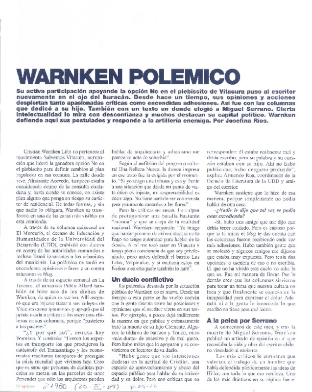 Warnken polémico (entrevista) [artículo] Josefina Ríos.