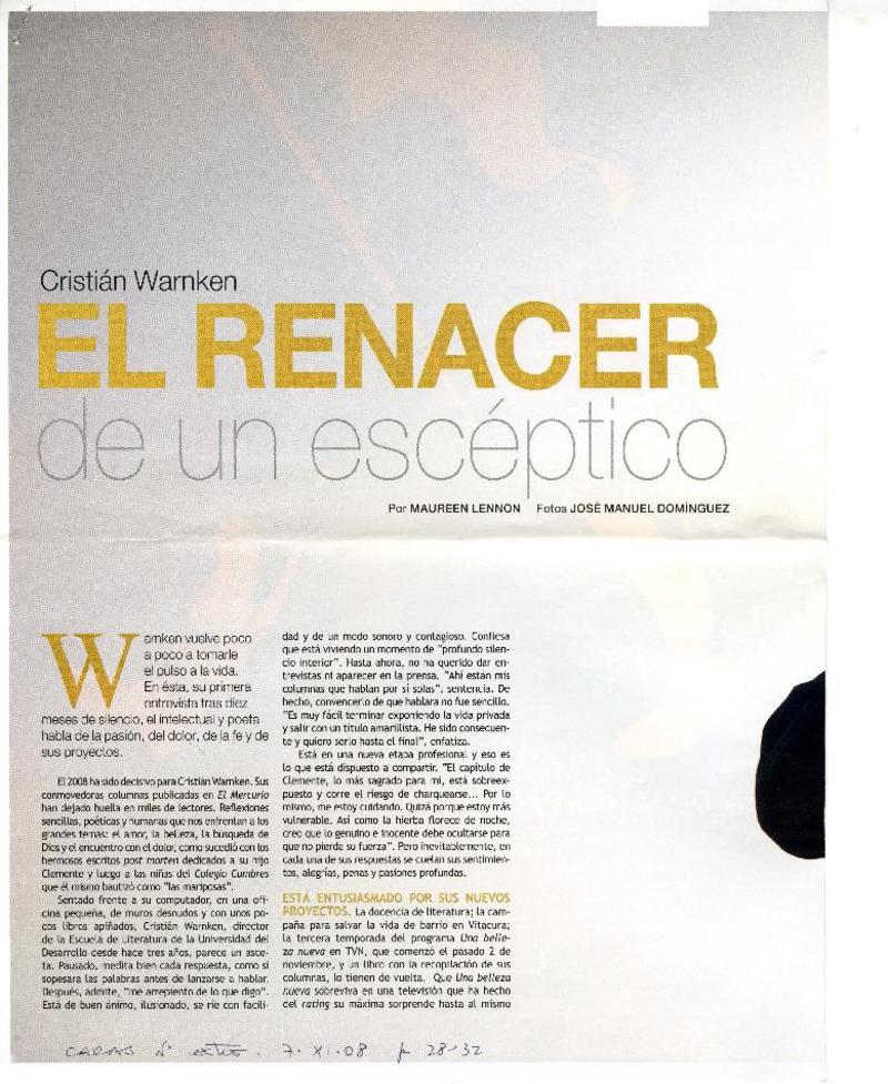 El renacer de un escéptico (entrevista) [artículo] Maureen Lnnon.