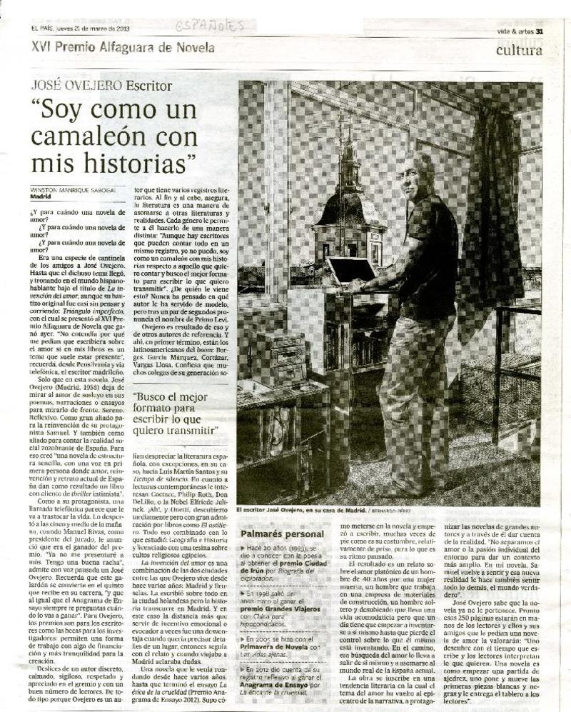 "Soy como un camaleón con mis historias" [artículo] Winston Manrique Sabogal.