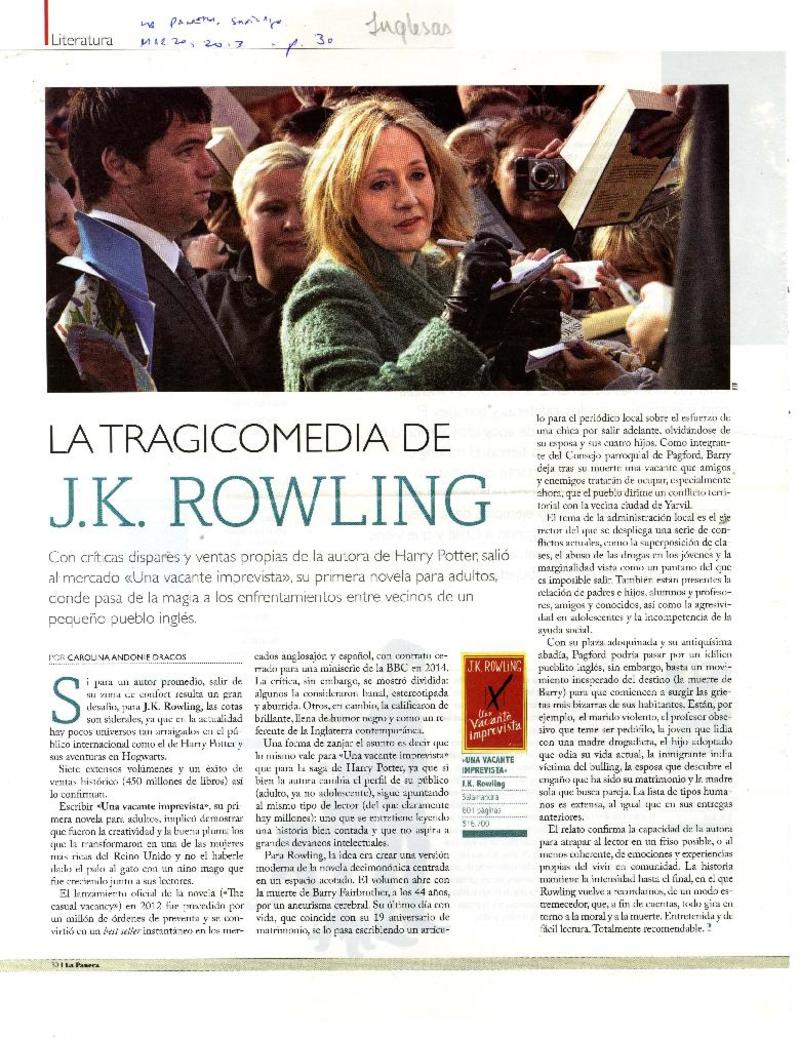 La tragicomedia de J.K. Rowling [artículo] Carolina Andonie Dracos.