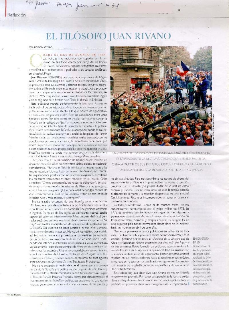 El filósofo Juan Rivano [artículo] Edison Otero.