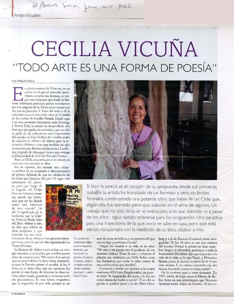 Cecilia Vicuña "todo arte es una forma de poesía" [artículo] Paola Pino A.
