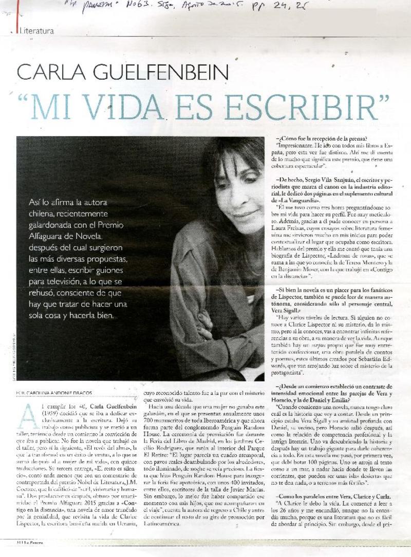 Autoras chilenas - Entrevistas - Guelfenbein, Carla - Contigo en la distancia