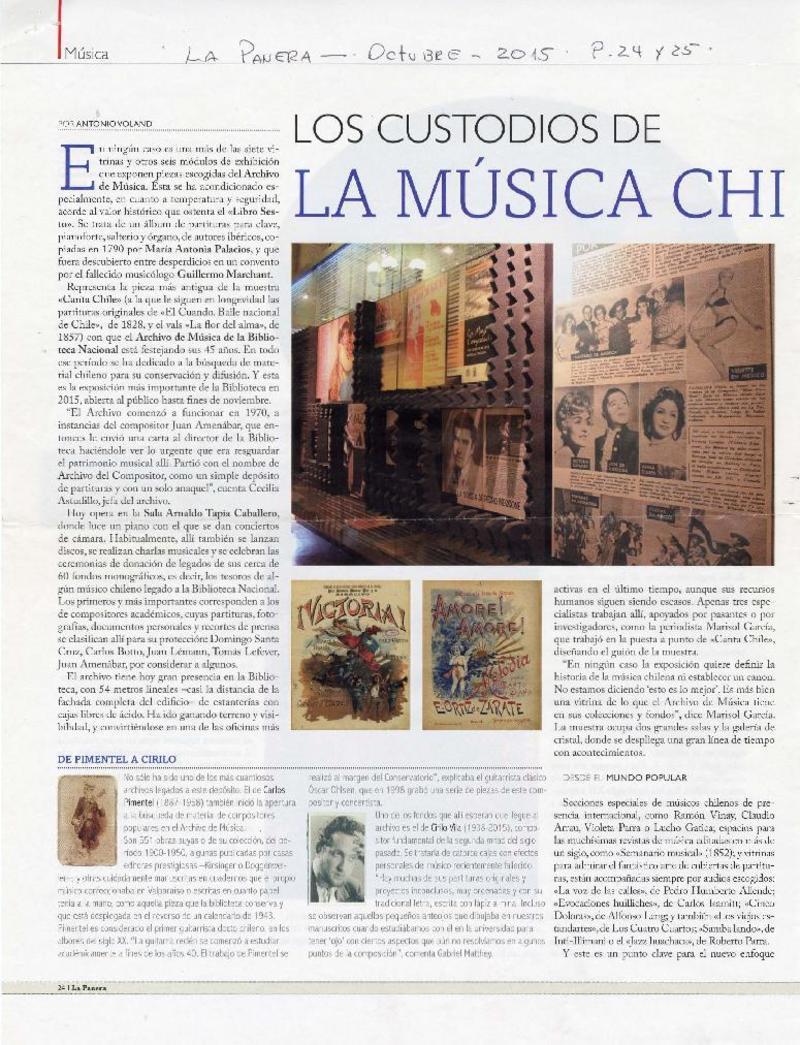 Los custodios de la música chilena [artículo] por Antonio Voland.