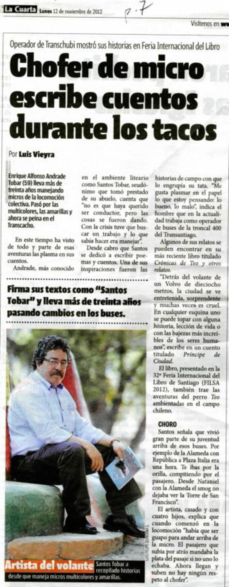 Chofer de micro escribe cuentos durante los tacos [artículo]Luis Vieyra