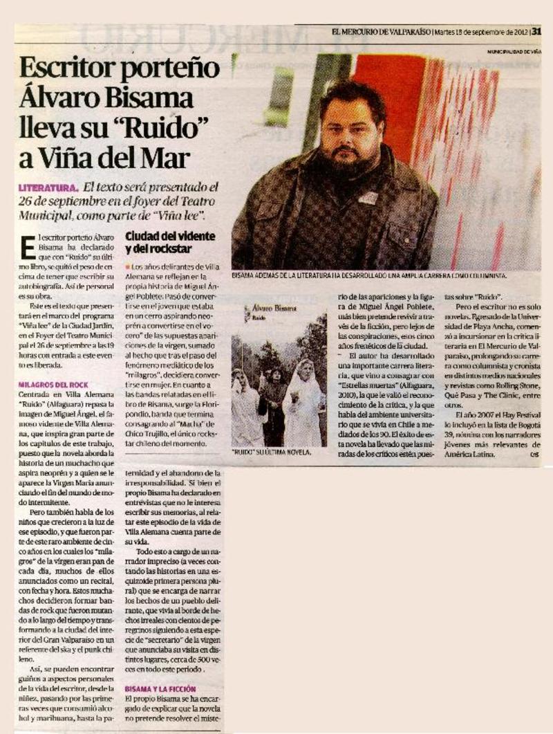 Escritor porteño Álvaro Bisama lleva su "ruido" a Viña del Mar. [artículo]