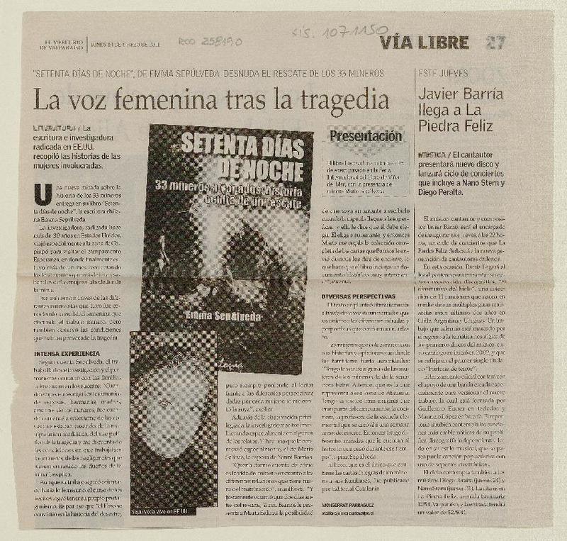 La voz femenina tras la tragedia [artículo] Monserrat Parraguez.
