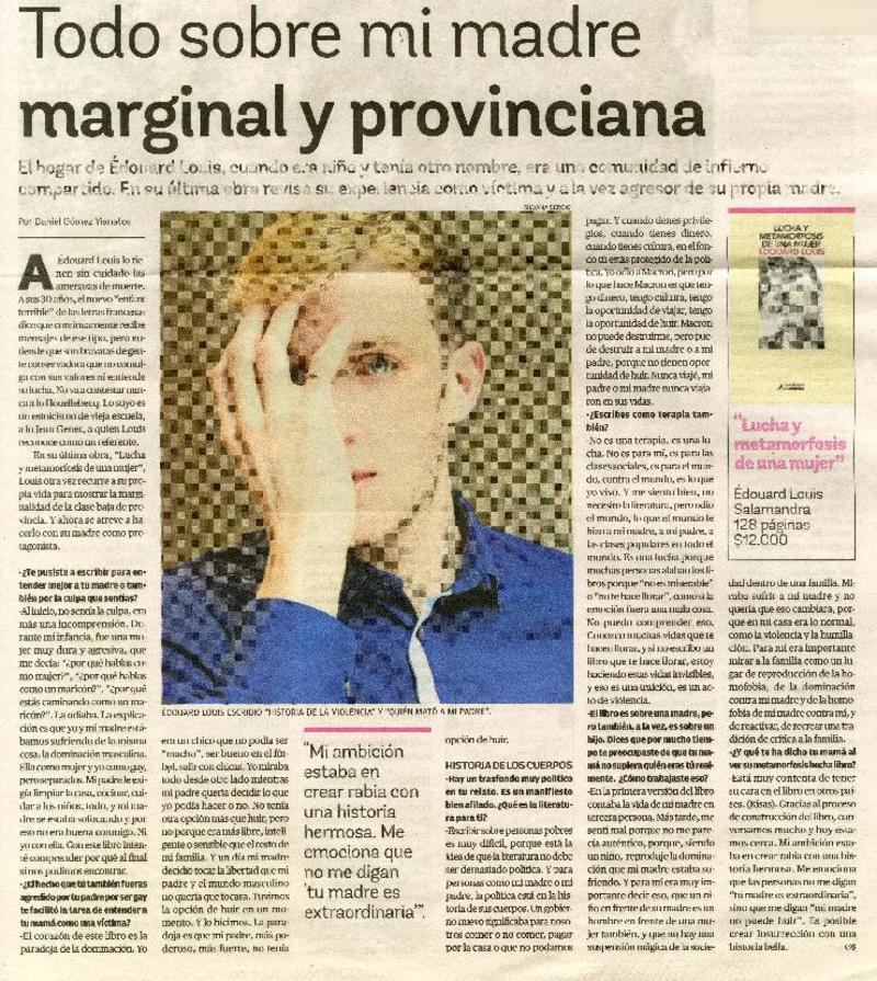 Entrevistas - Autores franceses - Louis, Édouard - Lucha y metamorfosis de una mujer