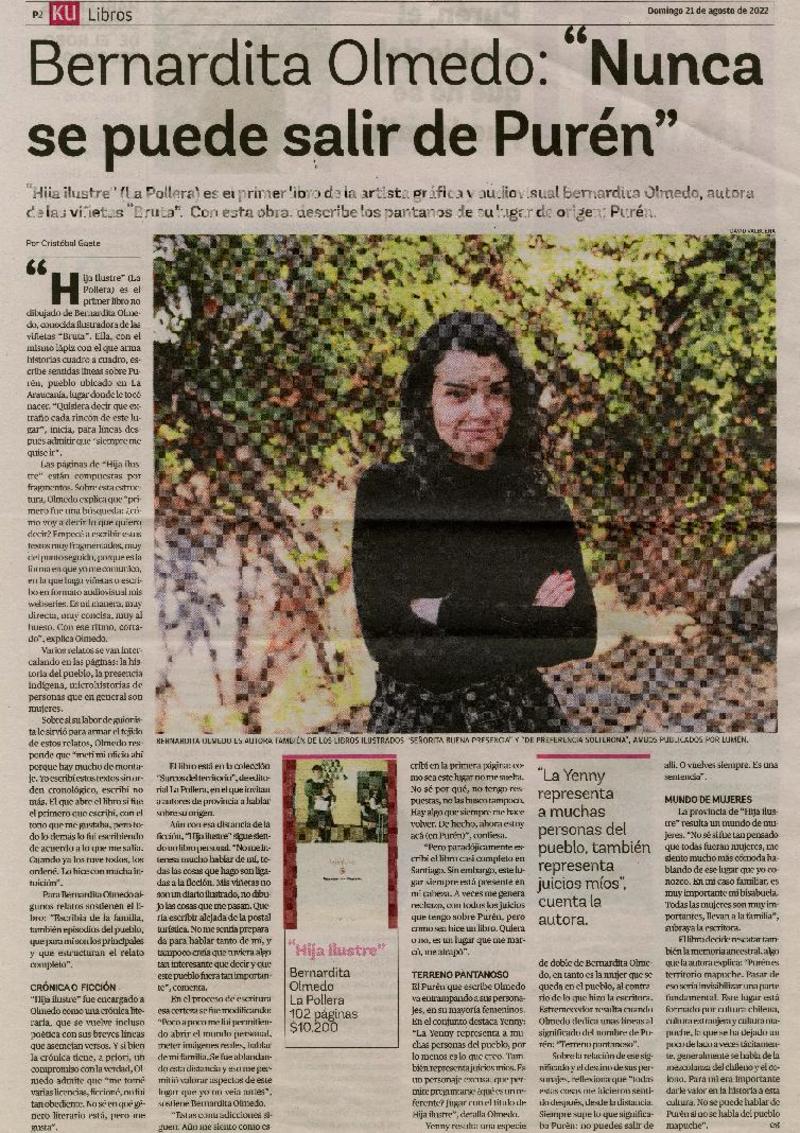 Bernardita Olmedo : "Nunca se puede salir de Purén" [artículo] Por Cristóbal Gaete.