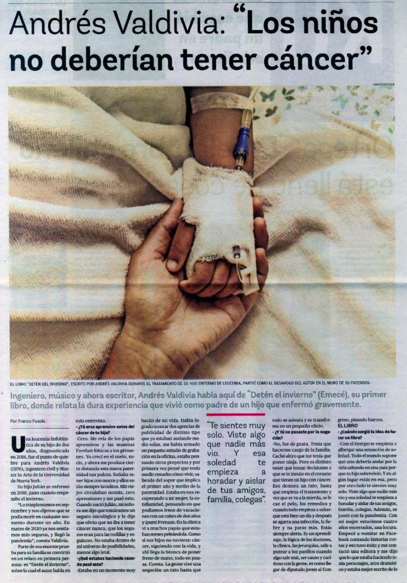Andrés Valdivia : "Los niños no deberían tener cáncer" [entrevista] [artículo] : Por Franco Fasola.