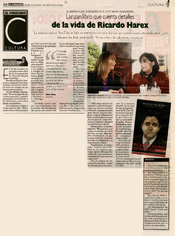Lanzan libro que cuenta detalles de la vida de Ricardo Harex [artículo] Carola Chavez B.