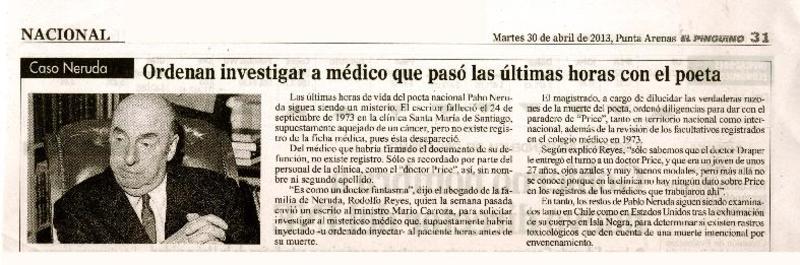 Ordenan investigar a médico que pasó las últimas horas con el poeta. [artículo]