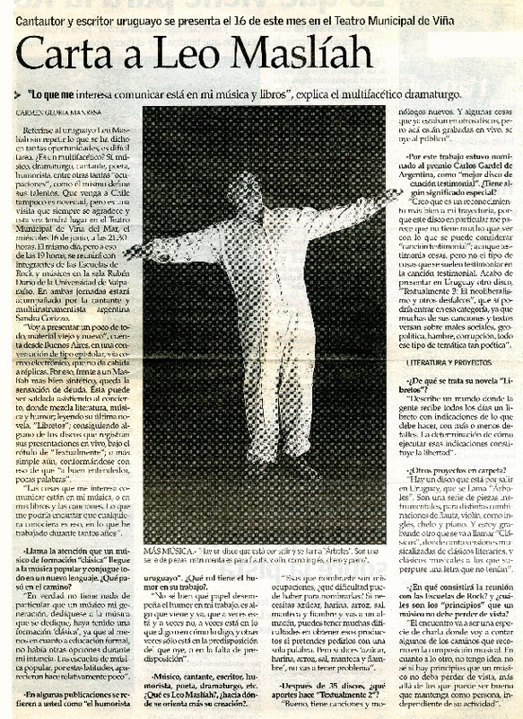 Carta a Leo Maslíah [artículo] Carmen Gloria Manresa.