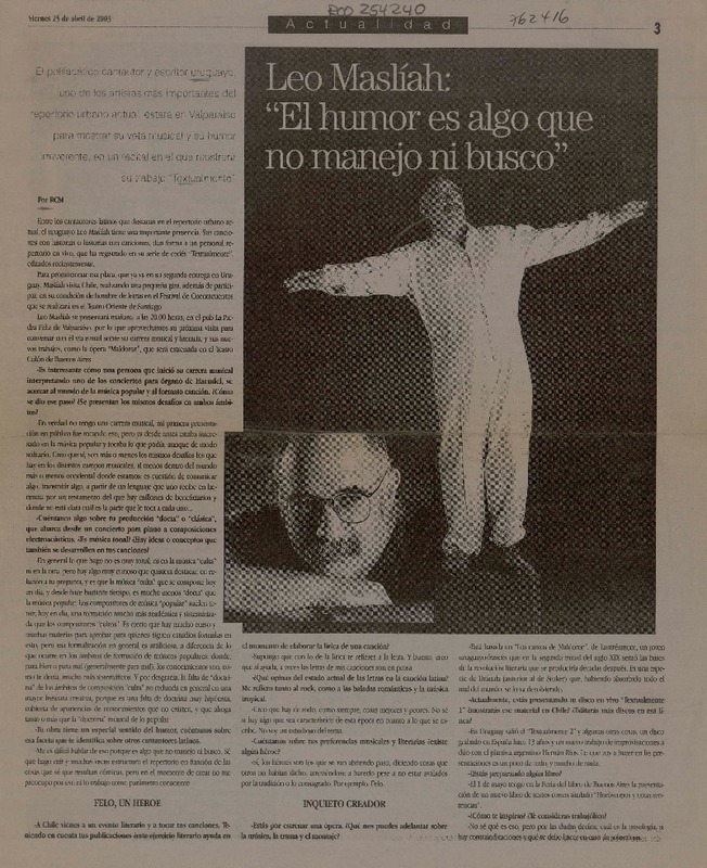 Leo Maslíah : "El humor es algo que no manejo ni busco" [artículo] R.C.M.