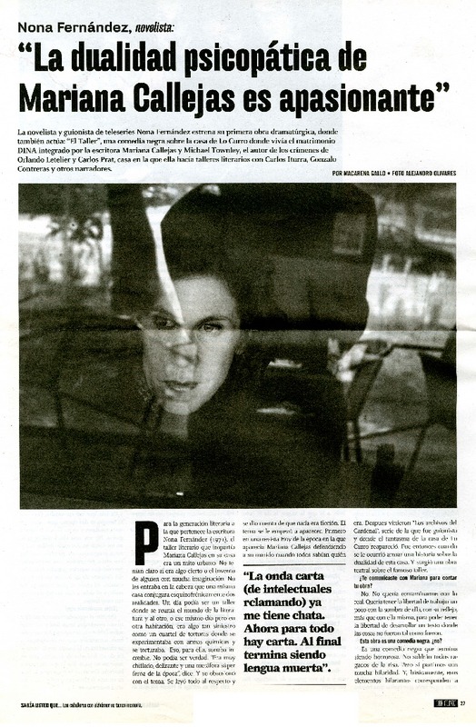"La dualidad psicopática de Mariana Callejas es apasionante" (entrevista) [artículo] Macarena Gallo.